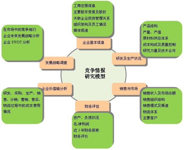 競(jìng)爭(zhēng)情報(bào)研究是關(guān)于競(jìng)爭(zhēng)環(huán)境、競(jìng)爭(zhēng)對(duì)手和競(jìng)爭(zhēng)策略的調(diào)查研究,是根據(jù)客戶的要求,通過(guò)合法手段,針對(duì)特定行業(yè)的競(jìng)爭(zhēng)對(duì)手企業(yè)或潛在競(jìng)爭(zhēng)情況進(jìn)行的調(diào)研。競(jìng)爭(zhēng)情報(bào)研究是一種系統(tǒng)的、合法的研究活動(dòng);是一種產(chǎn)品和服務(wù),研究關(guān)注的重點(diǎn)是企業(yè)外部那些影響企業(yè)戰(zhàn)略和策略決策的因素。